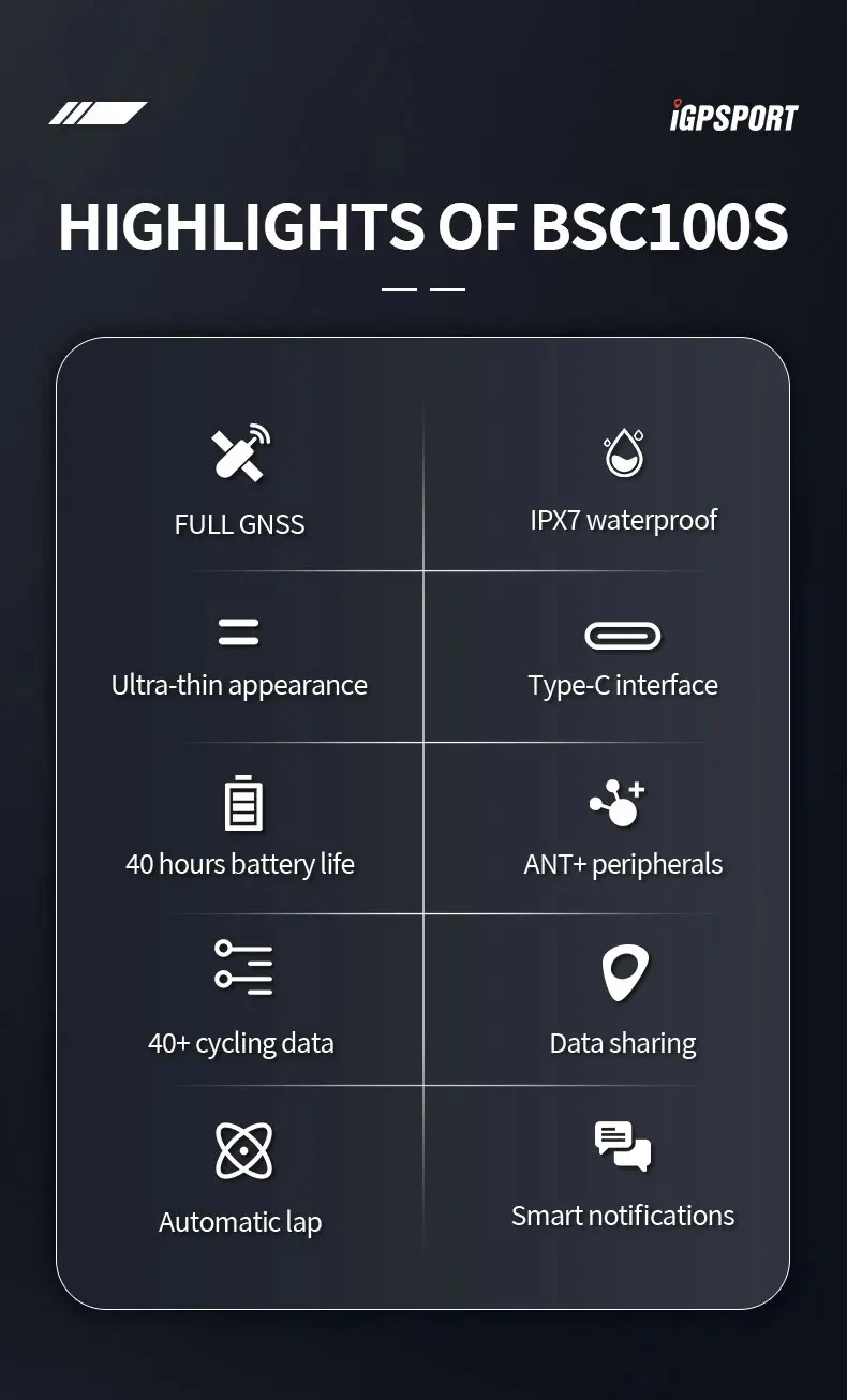 • Wireless Speedometer :The iGPSPORT BSC 100S Cycle Wireless Speedometer allows you to track your speed without the need for cables or wires, making it easier to use and more convenient.